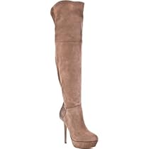 Add some sex appeal to any look with this style from Steve Madden. Fabulus features a taupe suede upper with shiny detail. This thigh boot is complete with a cuff detail side zipper 4 3/4 inch heel and 1 inch platform.